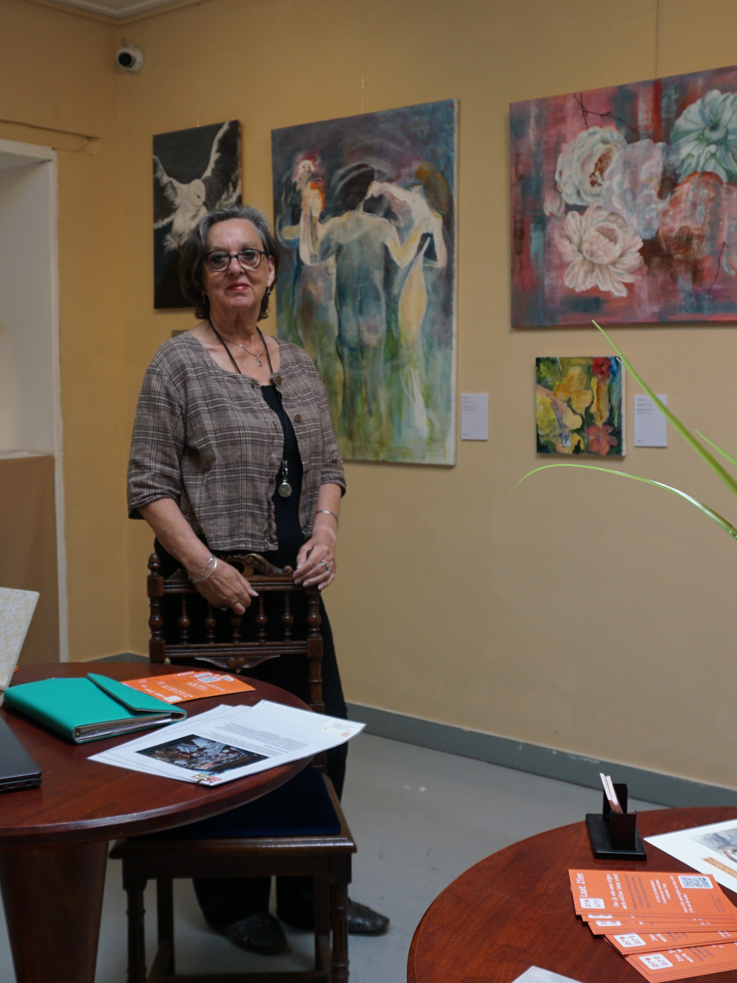 Dit is Marjanne. Ze verzorgt voor Pro Art de exposities. Elke 3 maanden laten 15 - 20 makers hun werk zien in Pro Art Laat Zien. Loop eens binnen!