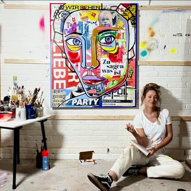 Haar praktijk is geworteld in belichaming, intuïtie en energetische sensitiviteit. Elk schilderij toont een moment waarop de innerlijke wereld doorbreekt in het zichtbare: kwetsbaarheid die omslaat in expressie, stilstand die beweging wordt, het komische en het rauwe die elkaar in dezelfde adem ontmoeten.